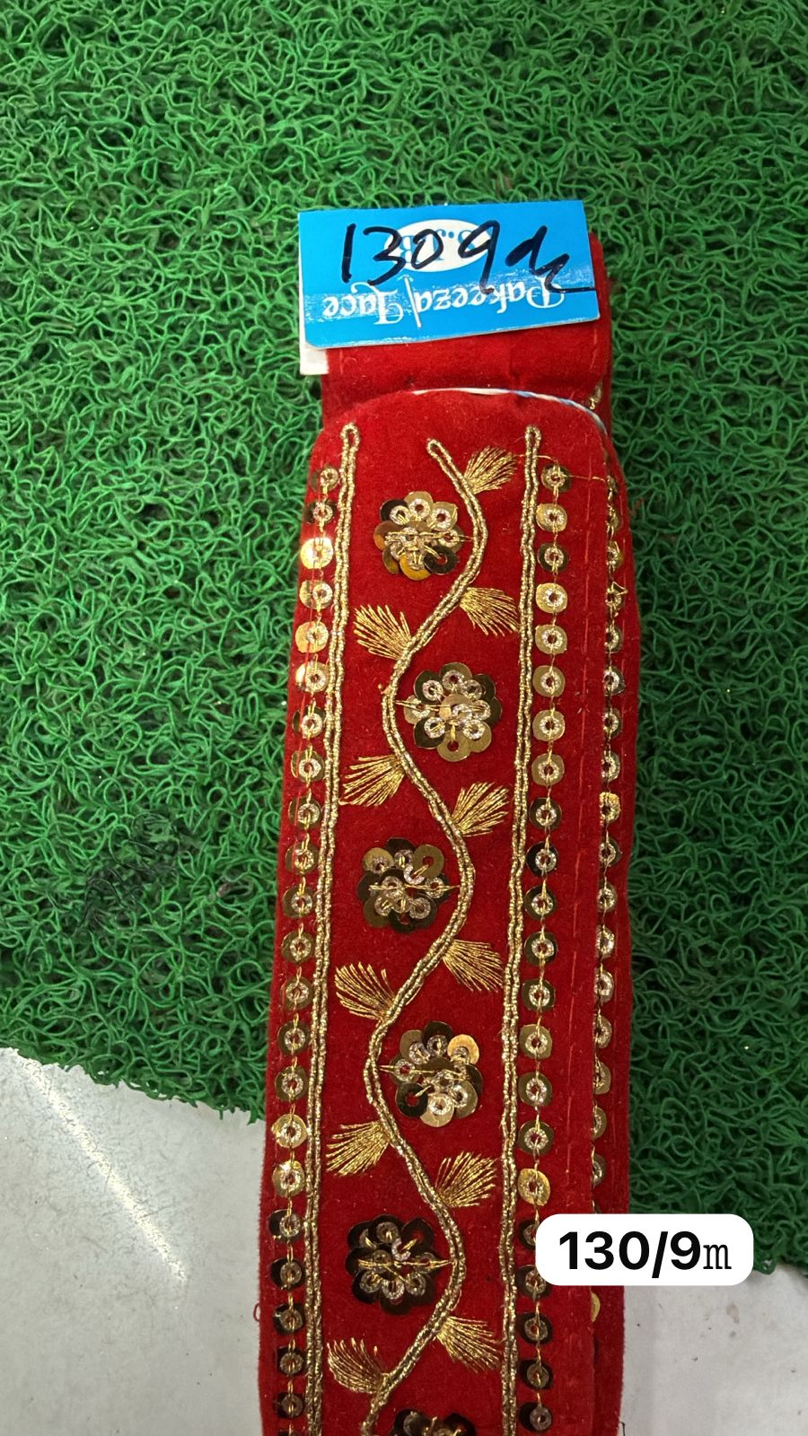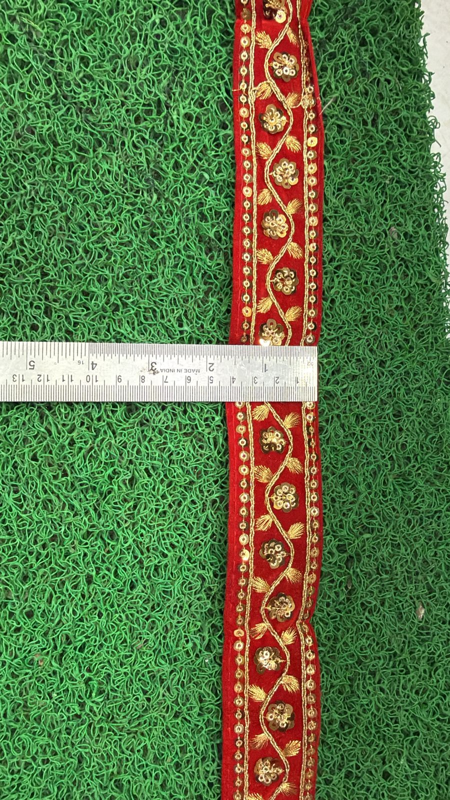 Sardar Ji Lace Wale presents a premium red embroidery lace featuring elegant golden floral vine design with sequin detailing. The slim and stylish pattern gives a graceful and premium look, perfect for enhancing ethnic and designer outfits.
